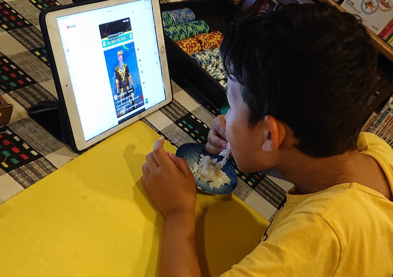 ネパールから来た小学2年生の男の子。今日の文楽舎のおやつは彼の一番のお気に入りの塩むすび。中に何か具が入っているおにぎりはまったく食べず、何も入っていない塩だけのおにぎりが大好きです。