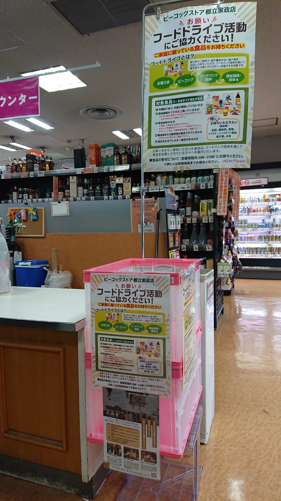 イオン株式会社では、ピーコックストア全35店舗でフードドライブを実施しています。近隣のピーコックストアからの提供先として弊団体が選定されました。現在毎月末、店舗をご利用のお客様より、食材のご提供を受けています。お客様の中には必ずしも賞味期限間近だからとか、食材が余っているからという理由ではなく、わざわざドライブ用に確保してくださっている方もいらっしゃるとのことです。なかには店内のポスターを見た足で、店舗で商品を購入し、そのままドライブしてくださる方も。本当にありがたいです。Thank you, and blessings to you.